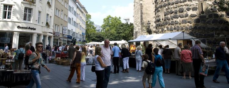 Viermal im Jahr findet der große Rhein-Antik, Kunst- & Desingmarkt in der Bonner Innenstadt auf dem Friedensplatz, der Vivatgasse, dem Bottler-Platz, der Windeck- und der Poststraße statt.