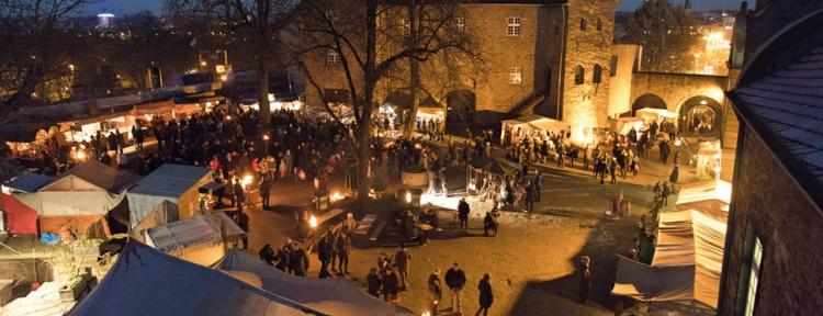 Im Schein von Kerzen und Fackeln erfreut die Broicher Schlossweihnacht auf dem Schlosshof mit einem Mittelaltermarkt jung und alt. Behagliches Ambiente, außergewöhnliche Beleuchtung und ein einzigartiges Krippenspiel begeistern hier auf voller Linie.
