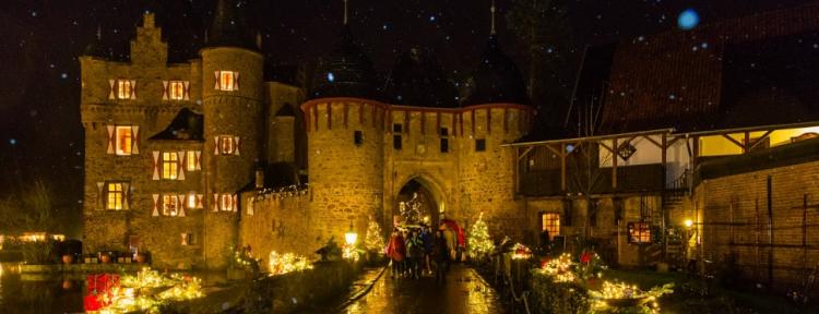Die Burg Satzvey lädt zum historischen Weihnachtsmarkt mit mittelalterlichem Krippenspiel.