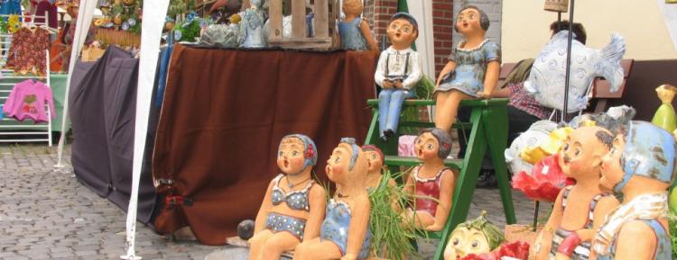 Etwa 110 Aussteller bieten auf dem Kunsthandwerkermarkt in der historischen Altstadt Altes, Neues und Ungewöhnliches. Drechsler, Bürsten- und Hutmacher, Münzenschneider und viele mehr zeigen ihr Handwerk. Für das leibliche Wohl sorgen bei diesem Markt die Anwohner in ihren Innenhöfen und Gärten.