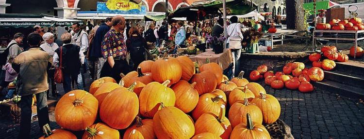 Kürbisse in allen Größen, Farben und Formen, die bei spätsommerlichen und herbstlichen Dekorationen in Haus und Garten einfach nicht fehlen dürfen,bietet der Soester Bördebauernmarkt.
