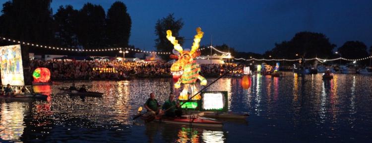 Hier wird einiges geboten. Musik etwa und Comedy, und das auf gleich fünf Bühnen. Eine weitere – und die wohl größte des ganzen Festivals: der Dortmund-Ems-Kanal selbst. Hier bietet sich die Möglichkeit zu Schiffsrundfahrten und Rennen, zum Fackelschwimmen, Wasserski-Aktionen und Licht- und Pyroshows. Unvergesslich: der traditionelle Lampionkorso am Samstagabend im Hafenbereich. Geschmückte Kanus und Ruderboote, teils mit herrlichen Motivaufbauten, ziehen dann ihre Runden über das Wasser. Und auch der Blick nach oben wird zeitweise spektakulär: beim großen Höhenfeuerwerk. Die perfekte Ergänzung: ein eigenes Kinderparadies, ganz ohne Kirmes, dafür mit Zaubershows Schminkaktionen und Hüpfburg.