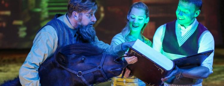 In der Manege wird die Geschichte zweier Freunde erzählt, die durch die Kraft eines magischen Buches auf eine unvergessliche Reise gehen.Dabei begegnen sie mutigen Trickreiter, der rasanten Ungarischen Post, süßen Ponies und Eseln sowie zauberhaften freilaufenden Hengsten.