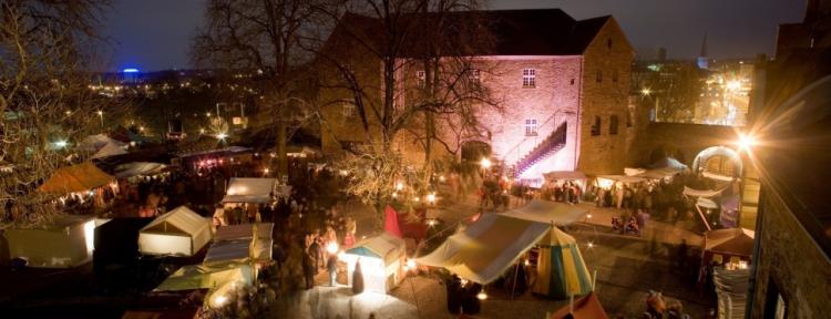 Weihnachtsbräuche aus vergangenen Zeiten und ein mittelalterliches Krippenspiel können Besucher vor der Kulisse von Schloss Broich eindrucksvoll erleben.