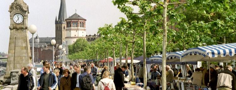 Buchhändler, Antiquariate und private Sammler aus dem ganzen Bundesgebiet verkaufen auf der Rheinuferpromenade seltene Buchschätzchen, lange Verschollenes und auch neue Bücher.
