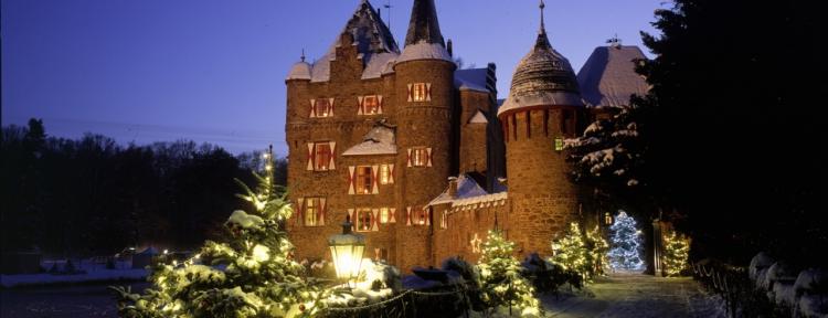 Historischer Weihnachtsmarkt mit mittelalterlichem Krippenspiel auf Burg Satzvey.