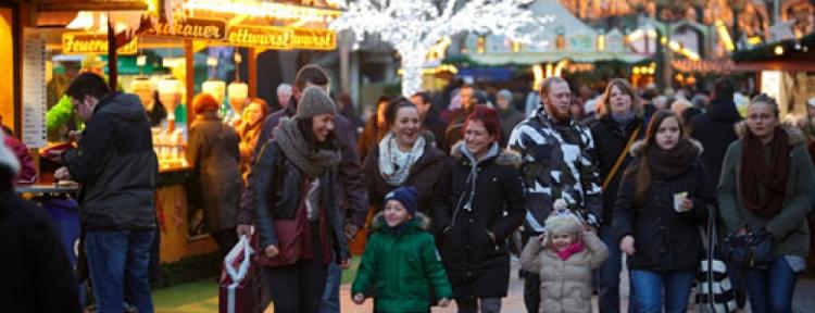 Stimmungsvoll geschmückt präsentieren sich den zahlreichen Besuchern alljährlich über hundert Stände. Ein nostalgisches Dorf mitten in der belebten Innenstadt, in dem die Händler ihre traditionellen Waren anbieten: Schmuck, Handwerk, Kerzen, Holzspielzeug, Glas- und Keramikarbeiten. Herrliche Geschenkideen eben. Und perfekt wird der Weihnachtsmarktbesuch dank einer Fahrt mit diem Riesenrad, einer schnellen Runde auf der Stadtwerke-Eisbahn oder einem gemütlichen Zwischenstopp an einem der Gastronomiestände.