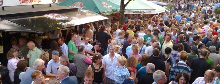 Ganz in der Nähe des Benrather Schlosses erwartet die Besucher in der Fußgängerzone eine riesige Auswahl an etwa 55 Bier- und Imbissständen.