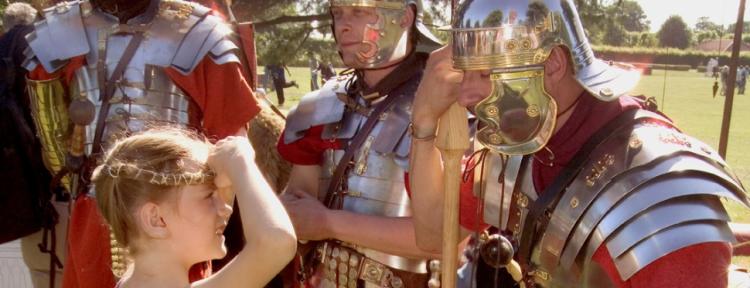 Nachwuchsrömer können bei spannenden Mitmachaktionen und Spielen Archäologie hautnah erleben. Bei den Handwerkern wird geschmiedet und geschnitzt und bei den Legionen dürfen Kinder ein Kettenhemd anprobieren oder sich am Minikatapult versuchen.