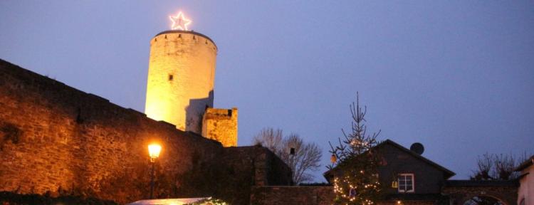 Die Burggemäuer und mittelalterlichen Straßenzüge bieten das perfekte Ambiente für einen romantischen Adventsmarkt. Neben zahlreichen Ständen mit Geschenkideen und Gaumenfreuden gibt es musikalische Untermalung und eine lebendige Krippe. An beiden Tagen kommt außerdem der Nikolaus zu Besuch und verteilt kleine Geschenke an die jungen Besucher.